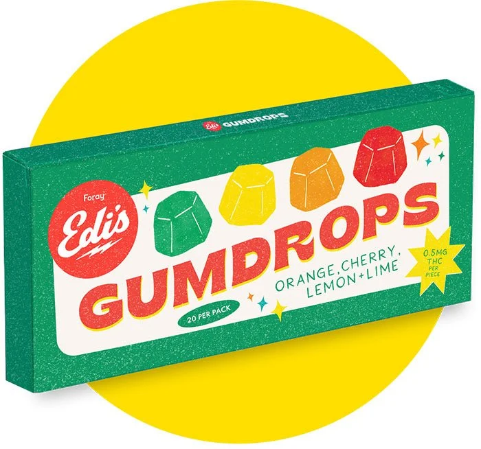 Edi’s Gumdrops are a delightful premium chewy candy bursting with cherry, orange, lemon and lime flavours. Each package contains 20 faster-onset pieces. Goody, goody gumdrops!